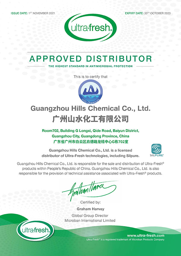 广州山水新材料是美国妙抗保Microban、Ultra-Fresh品牌的抗菌剂、防霉剂、抗菌防霉剂的一级代理商,是VALTRIS品牌的粘胶剂、增塑剂、特种稳定剂的华南代理商,是上海傲氟的双向PTFE双向拉伸膜(电子防水膜、透气膜)的华南一级代理商。
