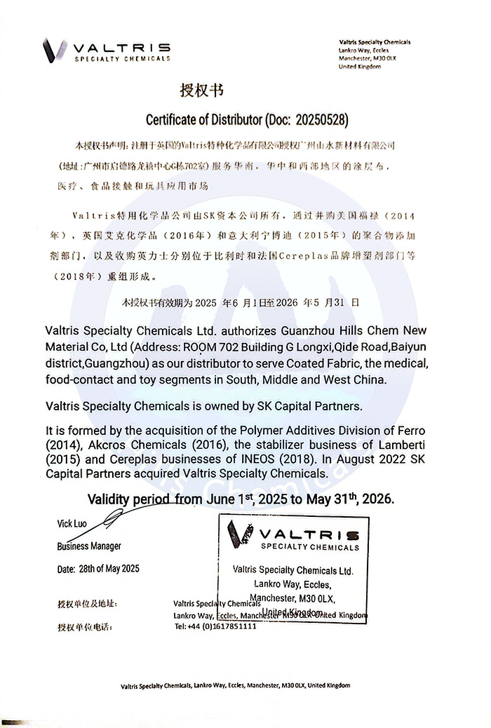 VALTRIS授权书